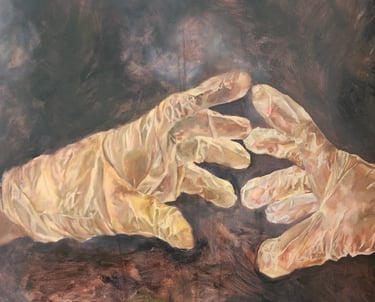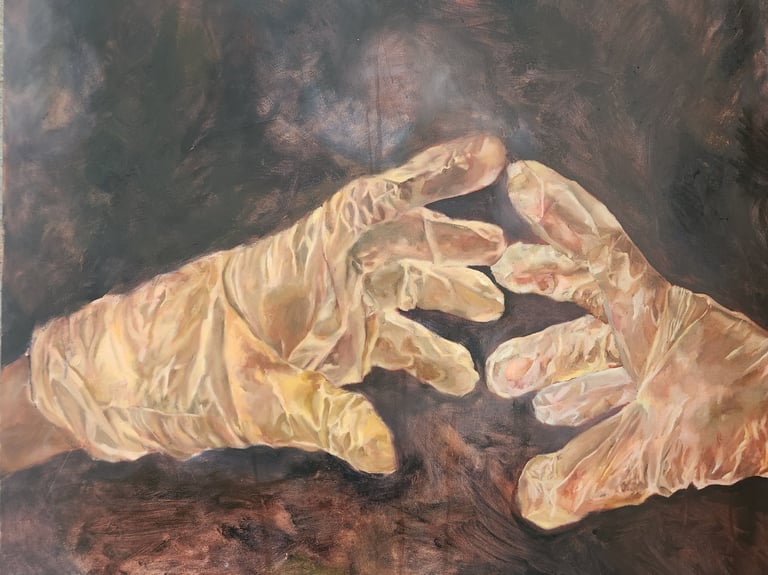This piece uses textures and contrast to illuminate the act of reaching out for help